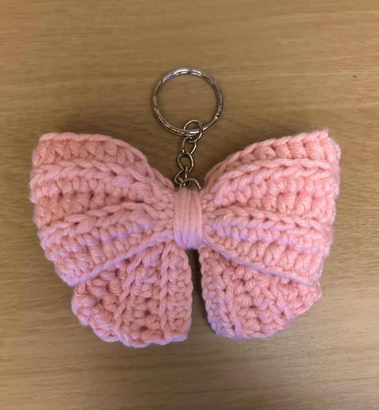 Hand made crochet bow key chain ideal to hang off your handbag or to put on your car keys or house keys or to give as a gift for family and friends or just as a birthday gifts