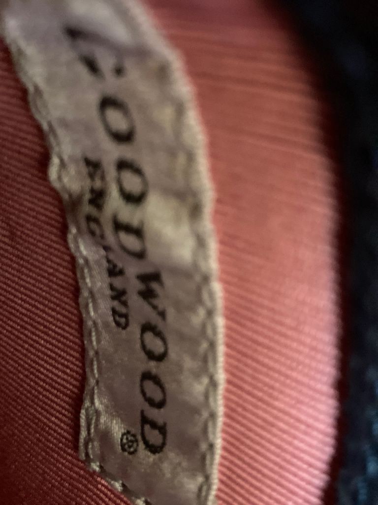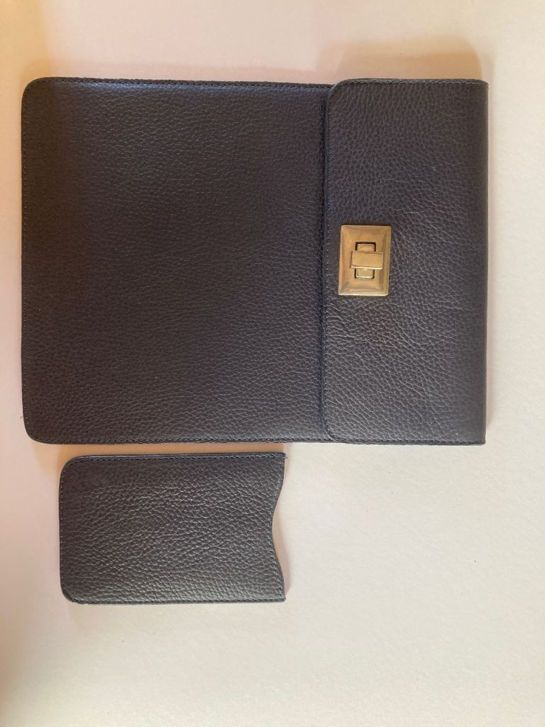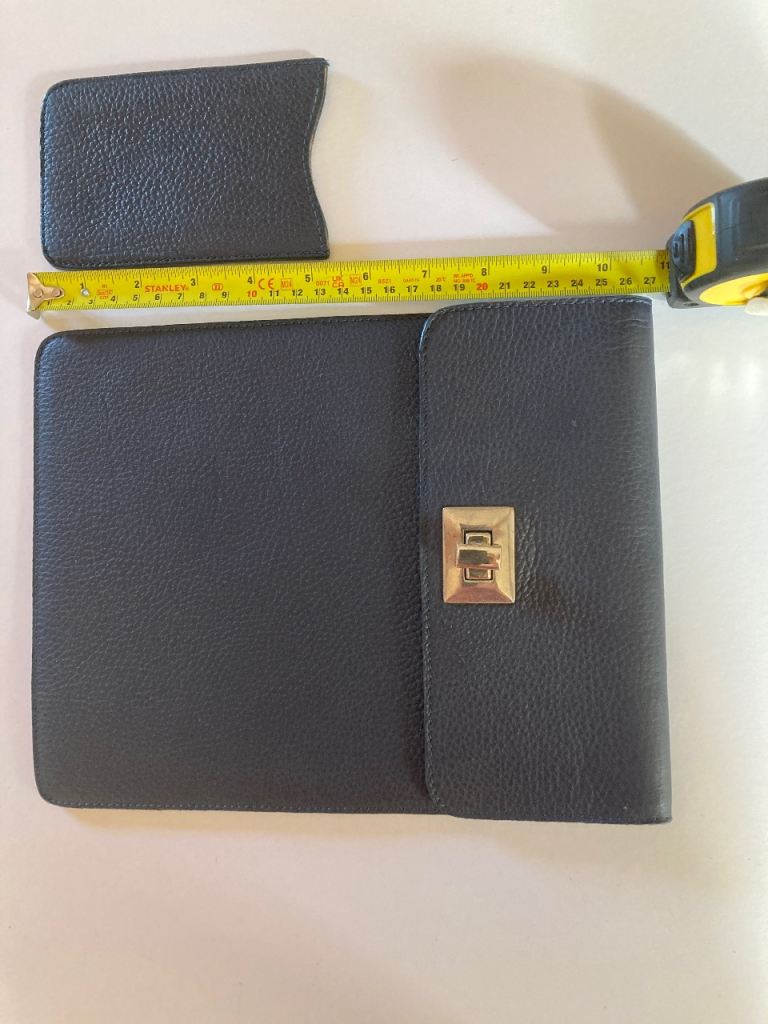 These two matching quality leather navy items have embossed Goodwood branding on the back and are lined with a sort of pink grosgrain.