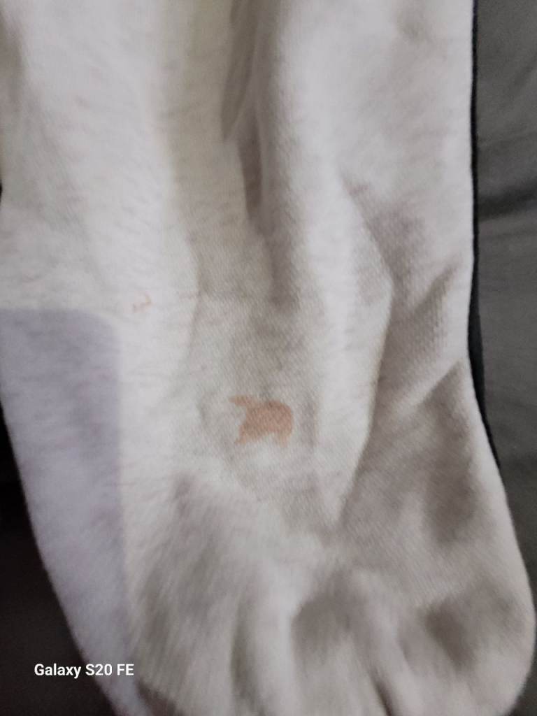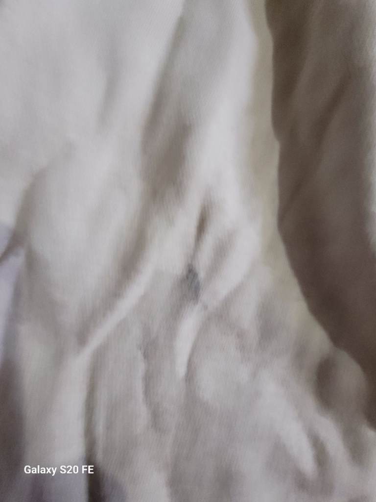 The overall color is a light neutral shade, which reads as a soft, slightly off-white, making them very versatile for styling. Note: There is a small dark mark/stain visible on the light fabric, consistent with used condition.
