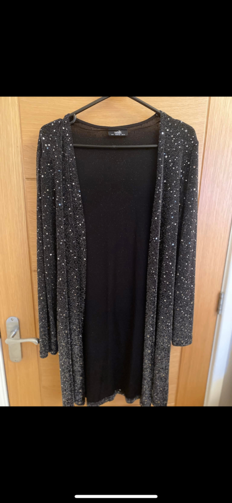 Wallis Women’s black elegant shimmer blazer , brand new size small . Perfect for a night out / wedding or party . It’s a very flattering blazer , length of blazer is 35 inch and arm length is 23 inch . Pictures doesn’t do it justice . Comes from a smoke and pet free home