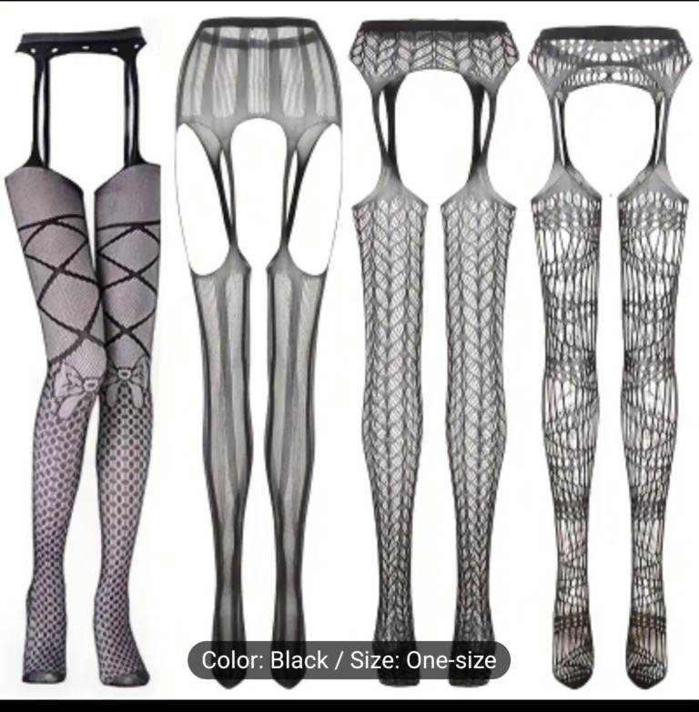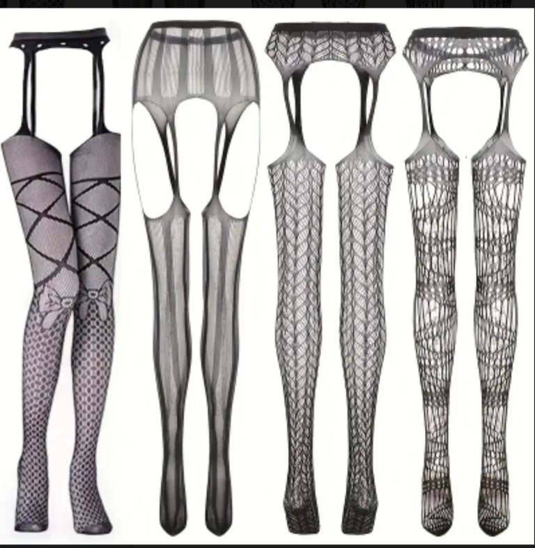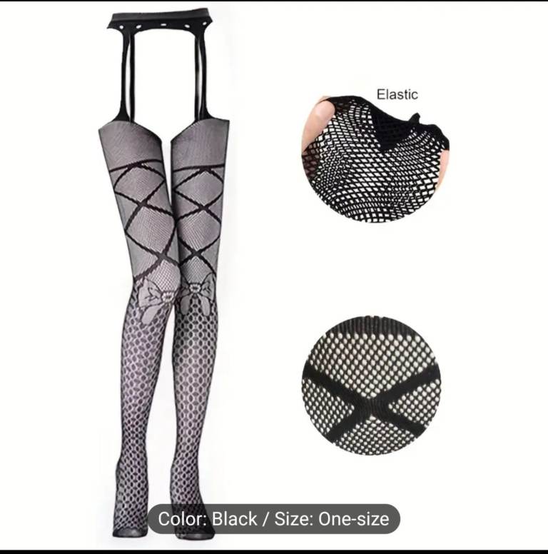 Bow Jacquard Tights, High Waist Fishnet Suspender Pantyhose, Women's Lingerie & Hosiery. Set of 4 . One size fits all GotStuffGetCash