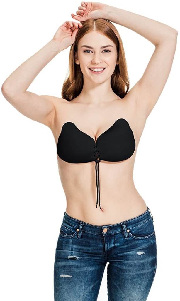 • Backless, strapless, stick on bra