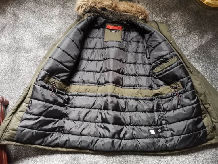 Very warm coat with fur lined hood. Worn only once but not required.