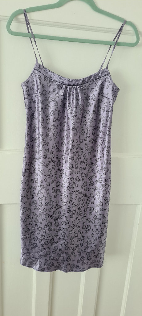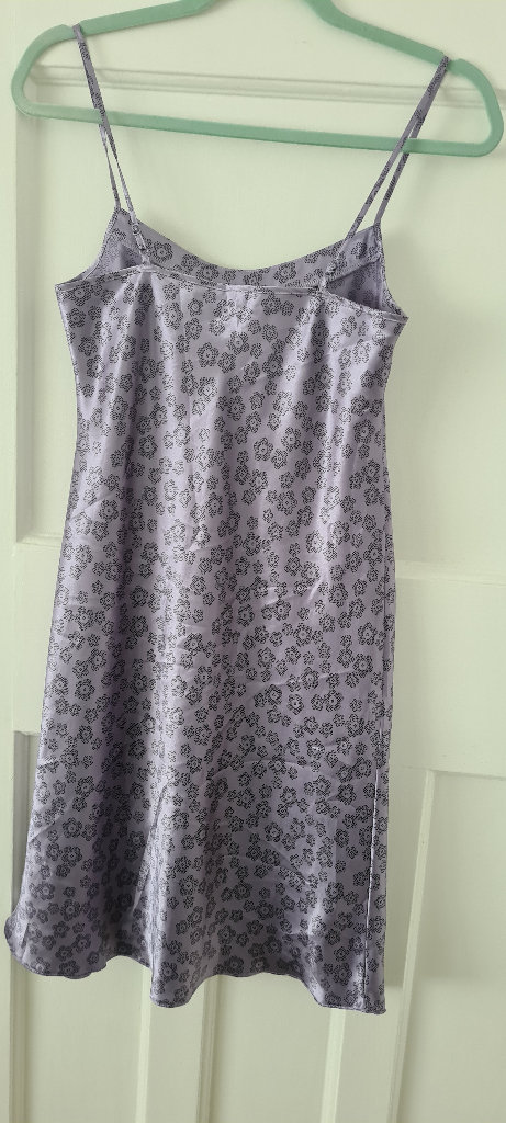 Marks & Spencer Womens Spaghetti Strap Nightdress in purple with black dot flower pattern, size 8. Worn only once in perfect condition.