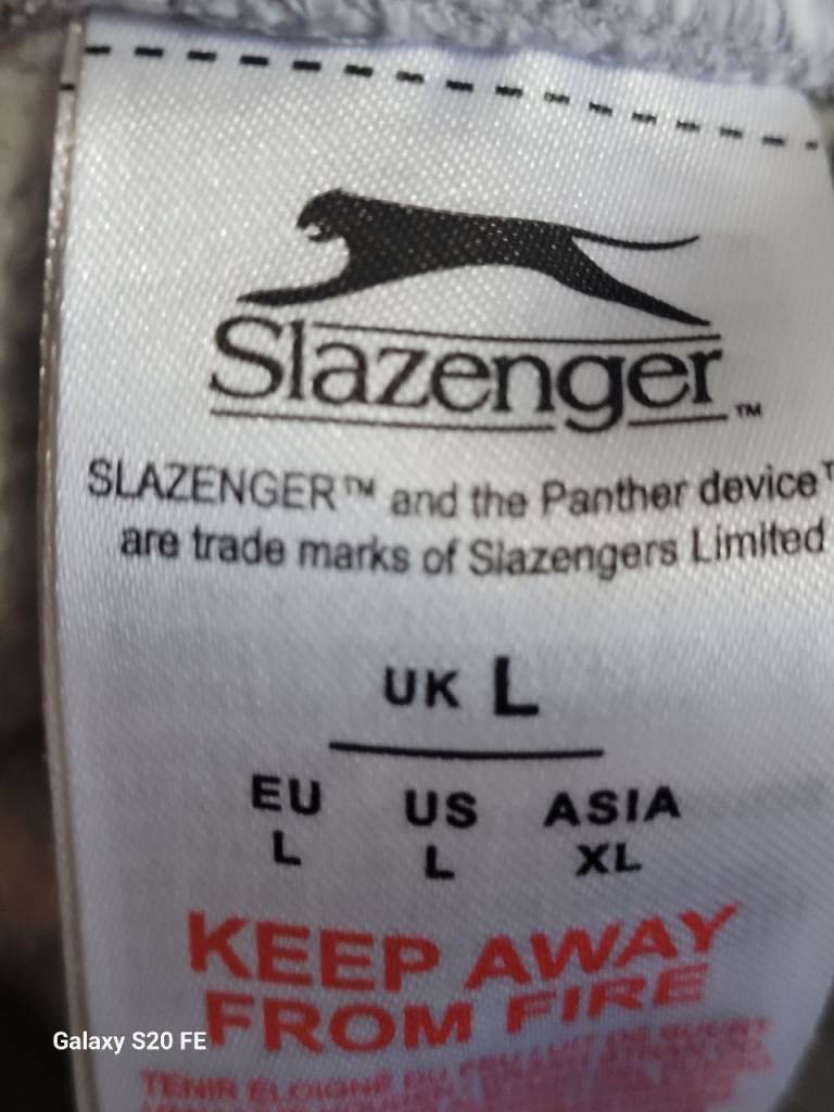 ⚠️ Please Note: There is a tiny hole/mark present on the front of the material. This is reflected in the price, making this a great deal for authentic, comfy Slazenger athletic wear in used condition. The company details mention Slazengers Limited in Shirebrook.