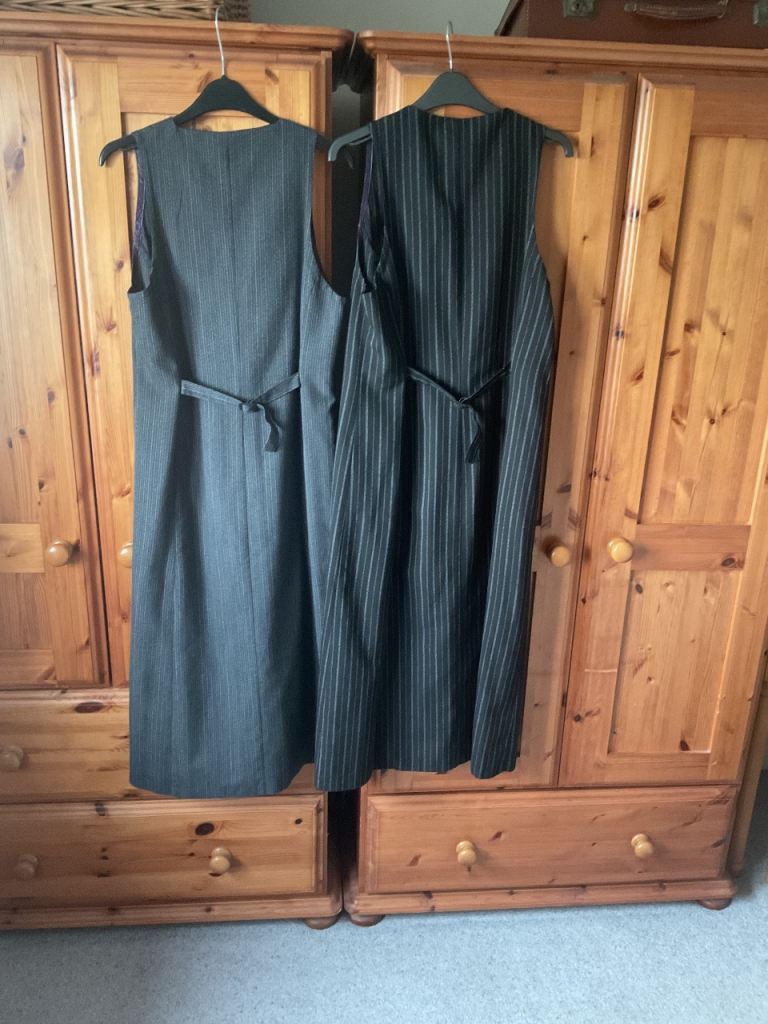 Two Vintages Richard’s pinafore dresses. Size 12/16 one grey and one black buttons on front.