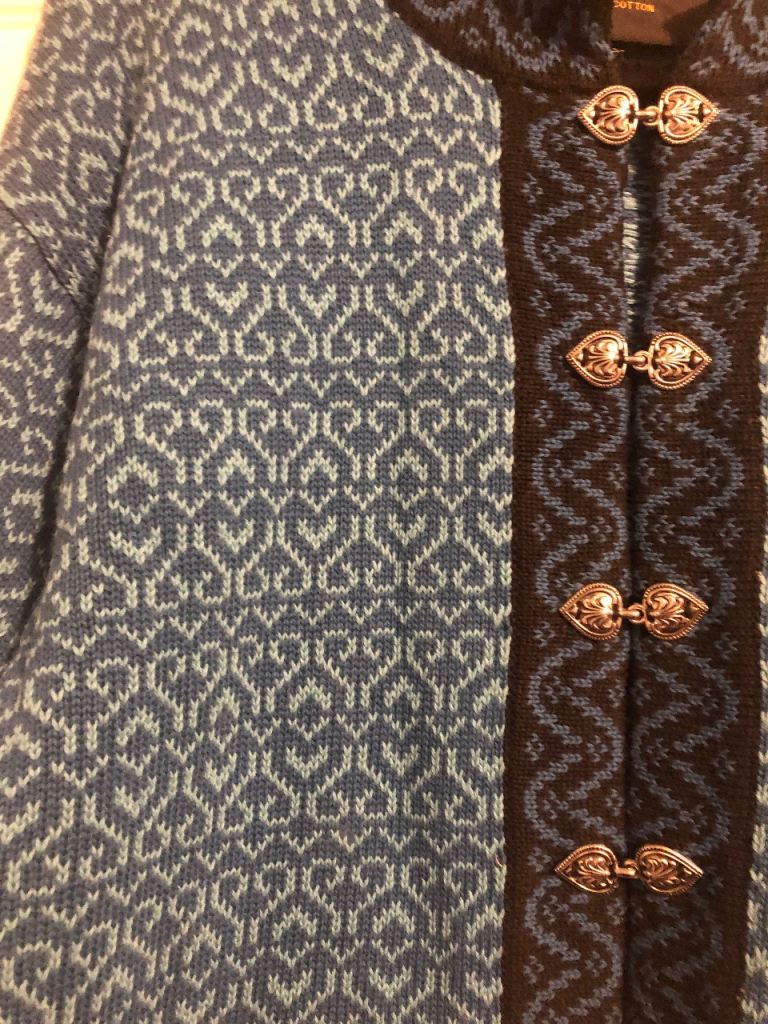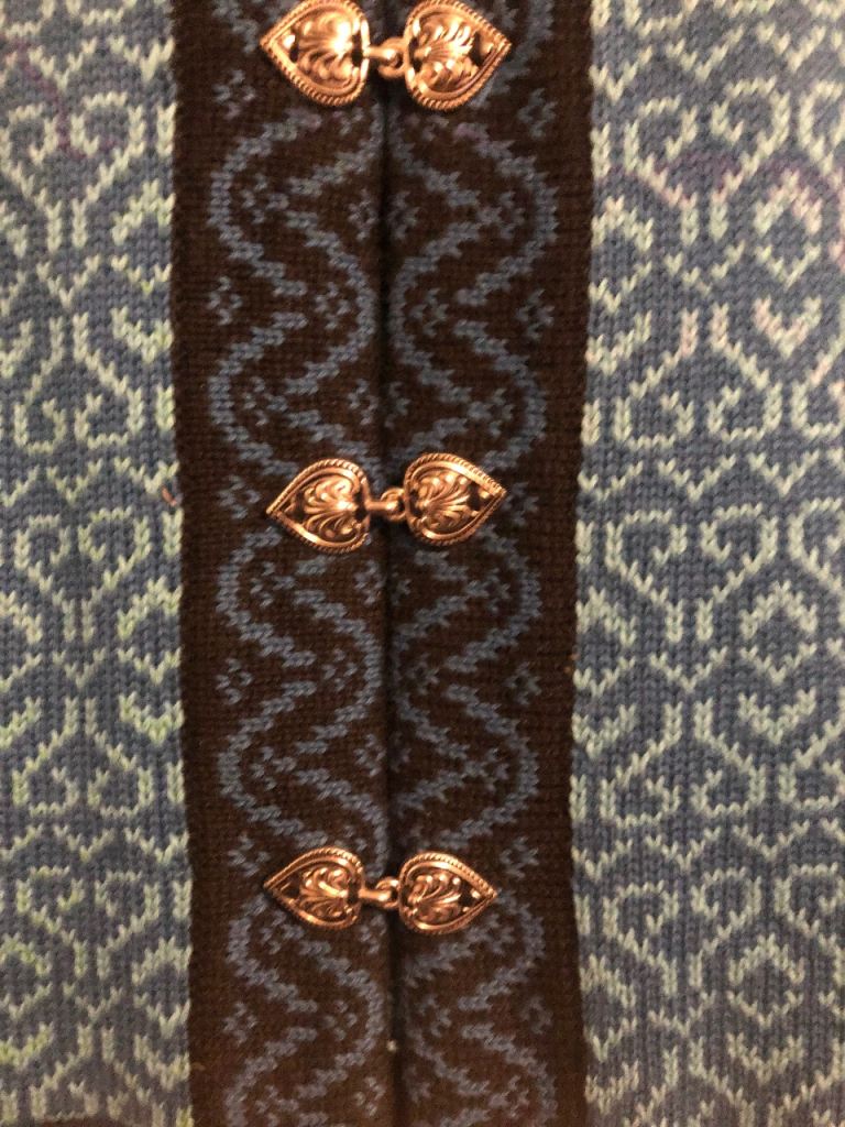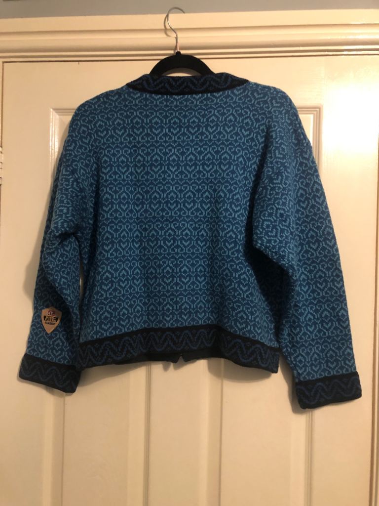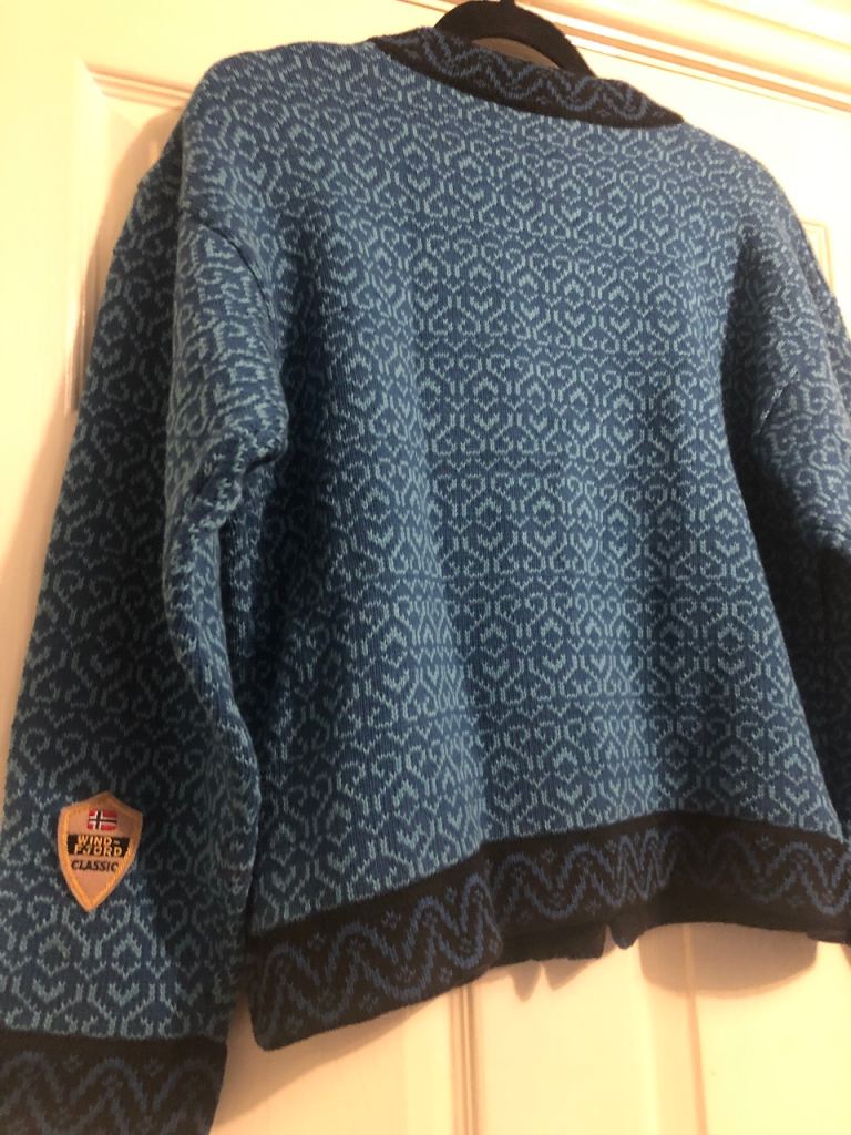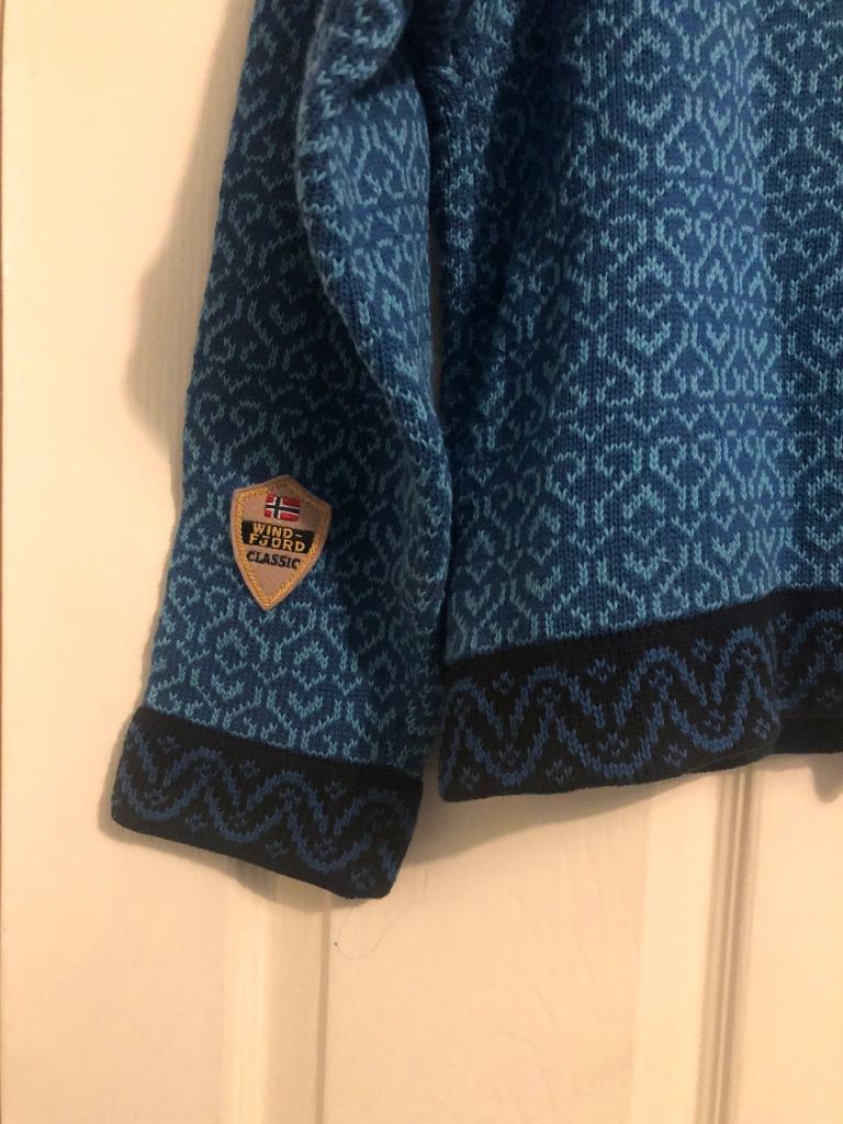 Windfjord Classic genuine Norwegian knit sweater in excellent condition. Worn once with one label removed. High‑quality 100% cotton, traditional blue Nordic pattern and metal clasps. Originally around £95. 💙