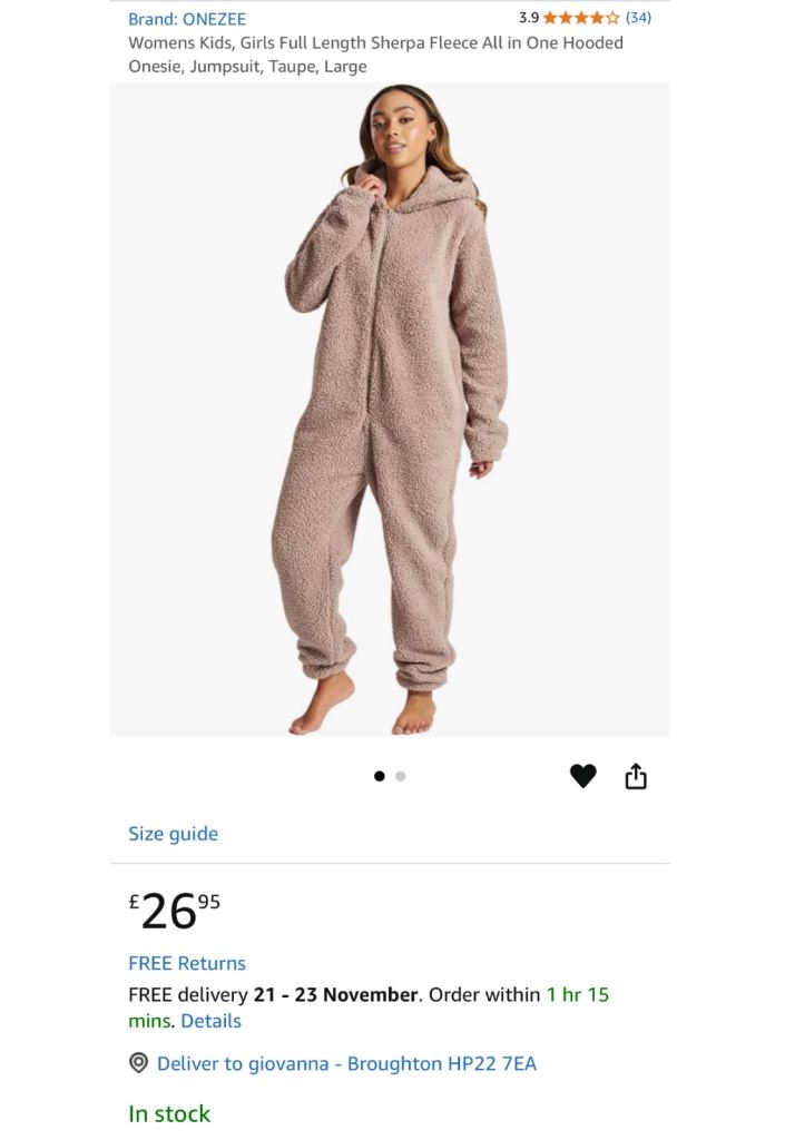 Womens Full Length Fleece All in One Hooded One Piece Jumpsuit Size: Large 14-16