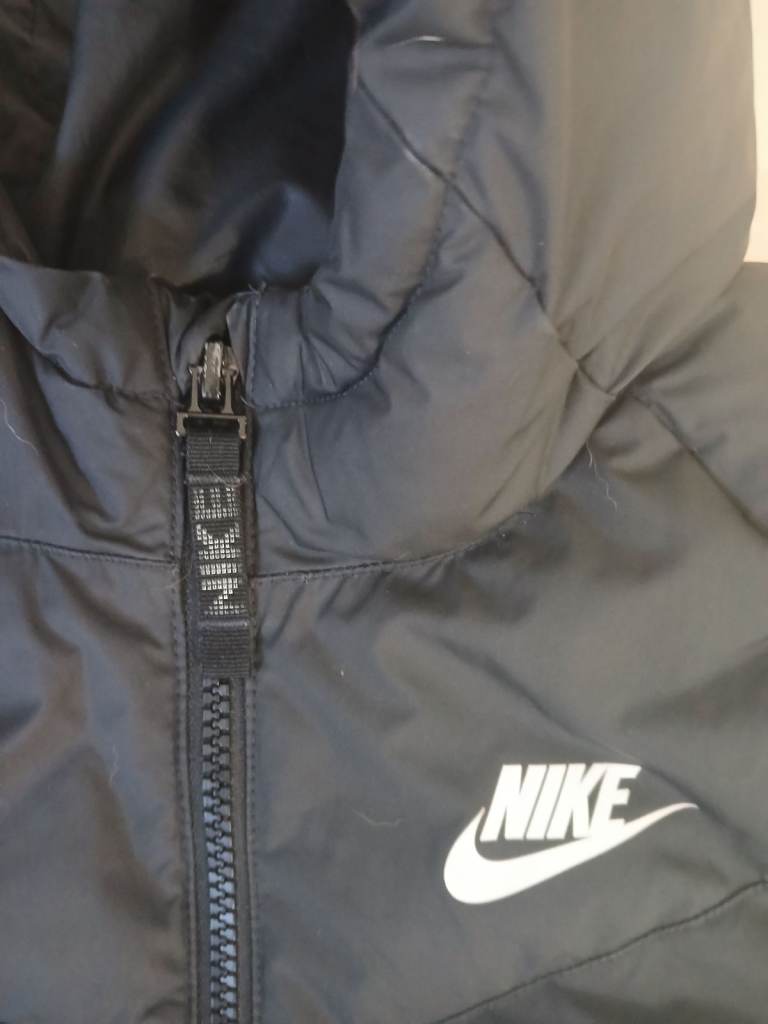 Black padded Nike zip up coat with slit pockets. in excellent condition size small .pick up only .can be worn by girls or boys.