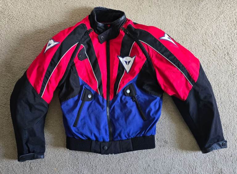 90's in Classic Red Blue and Black. Beautiful Vintage Bikers Jacket