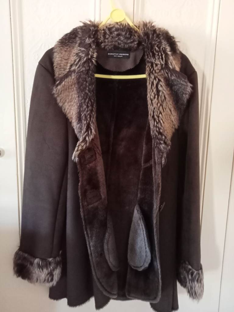 Ladies Faux Fur ladies jacket from Dorothy Perkins.....used but very nice condition...size 16. Collection only please.