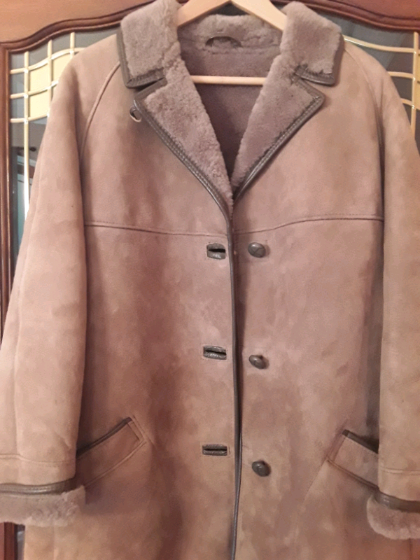 Genuine ladies sheepskin coat trimmed with leather size 16 in great condition