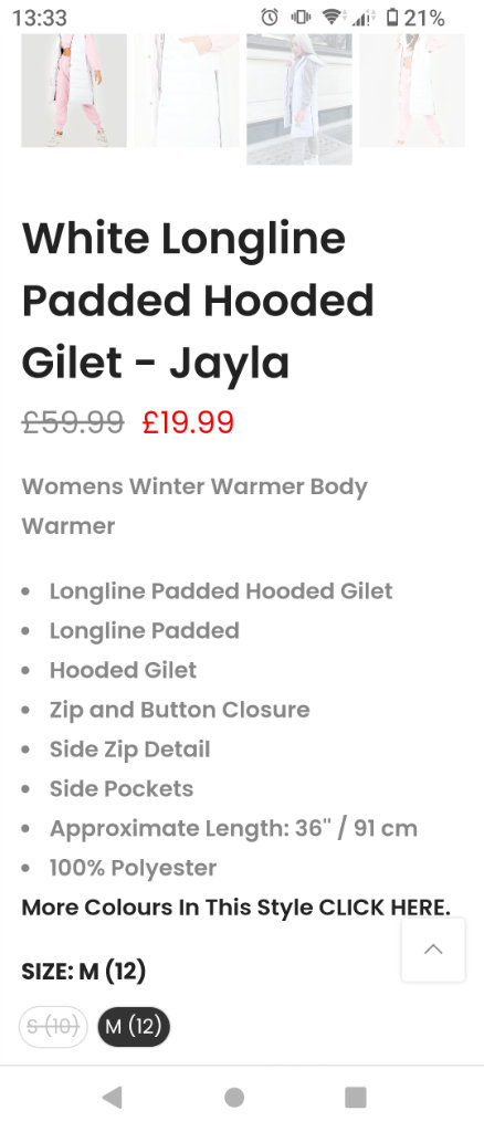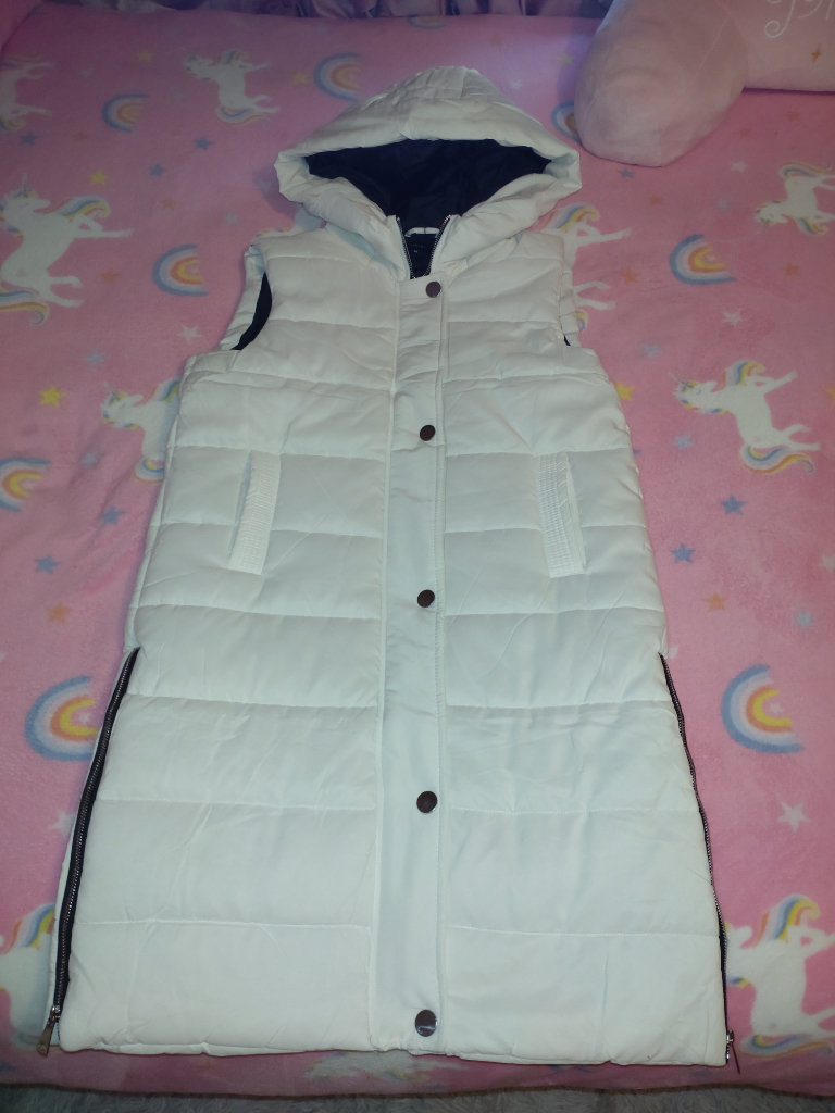 Brand new with tags. Ladies longline white gilet. Side zips, pocket's and hood. Size medium. Paid £20, selling for £10. Pick-up only please.