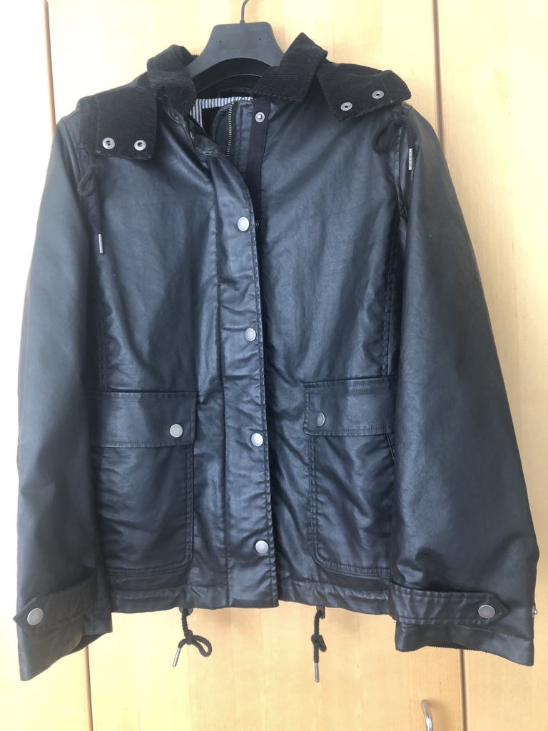 Retro black pin stripped jacket by Amaranto/ clean cut style fully lined with two pockets size12 in excellent condition