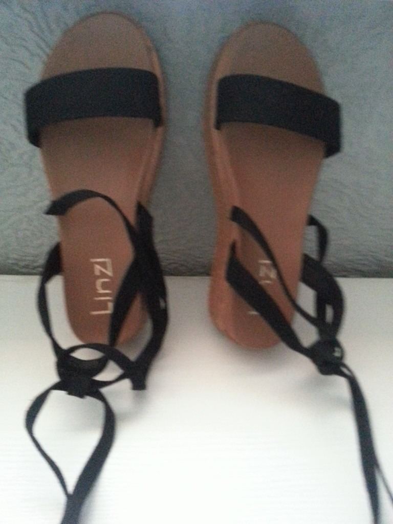 For Sale Linzi Black Summer Roman Sandals Multiple Faux Suede Strap.