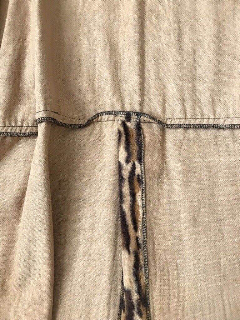 Bought this many years ago and have worn it once- to a “ hippy gathering “! It looks home- made and the material seems 40’s or 50’s.The sleeves are wide and 7/8 length. There are no