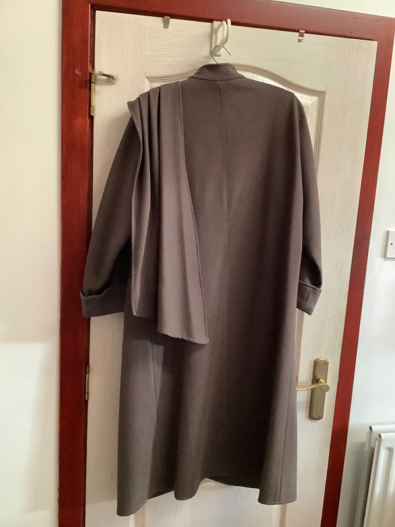 Ladies, lovely, 80% wool, olive green coloured coat with attached over-the-shoulder shawl. Size 12/14. In excellent condition. Pick up from Perth PH2 7AW or I could drop off in Perth area, or mail plus postage.