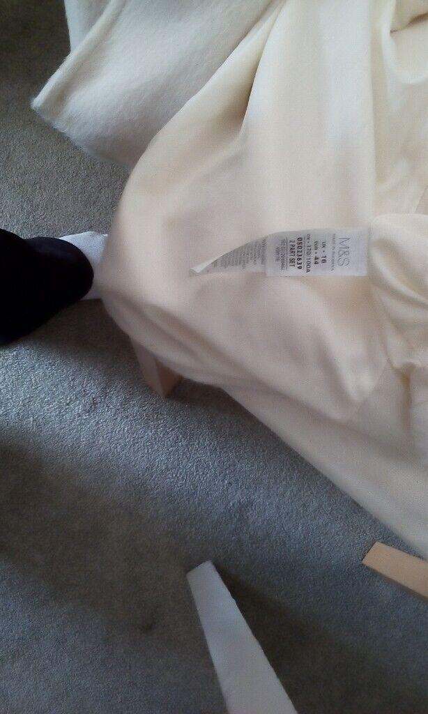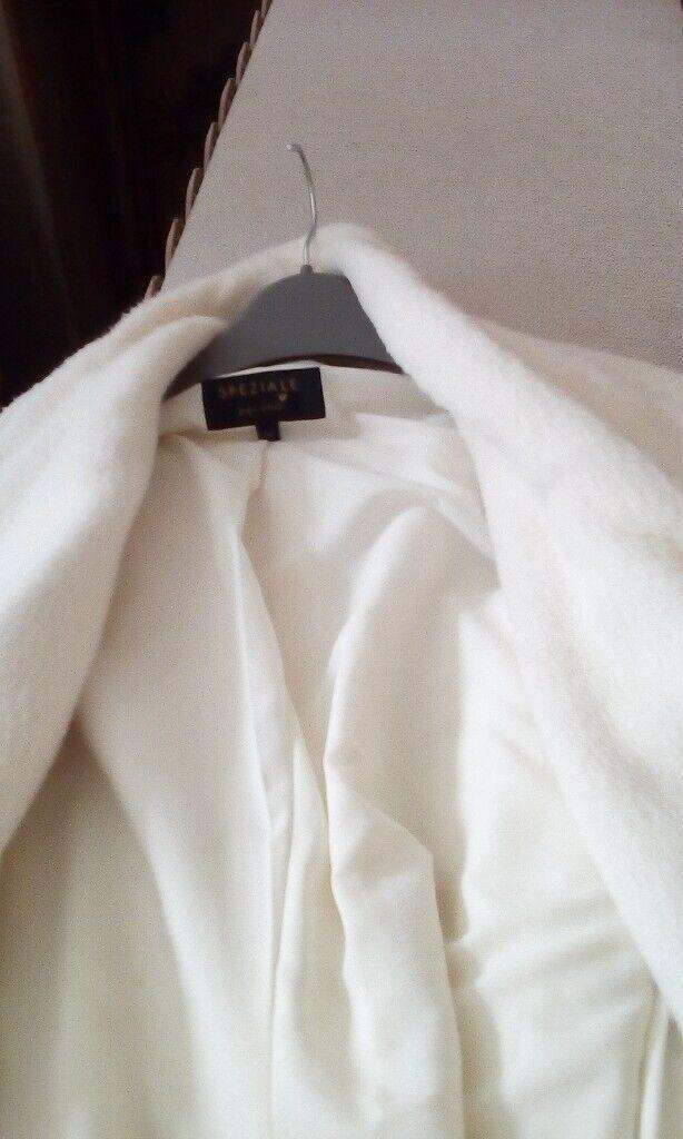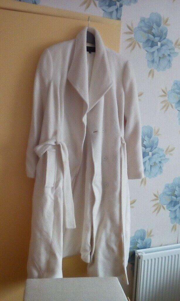 M and S long white winter coat 83% Alpaca, 17%wool and a polyester lining. Good condition. size 16