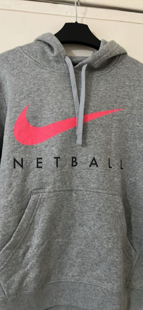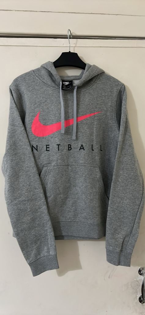 Embrace the comfort and style of the Nike Grey Ladies Netball Hoodie, a perfect blend for your activewear collection. This hoodie, sized large for a regular fit, is crafted from soft, breathable cotton,pet and smook free home collection only.