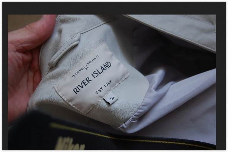 River Island ladies Faux Leather Jacket size 16 - Edge to Edge - Grey. It is a small 16 better fitting a size 14 really. Lovely condition