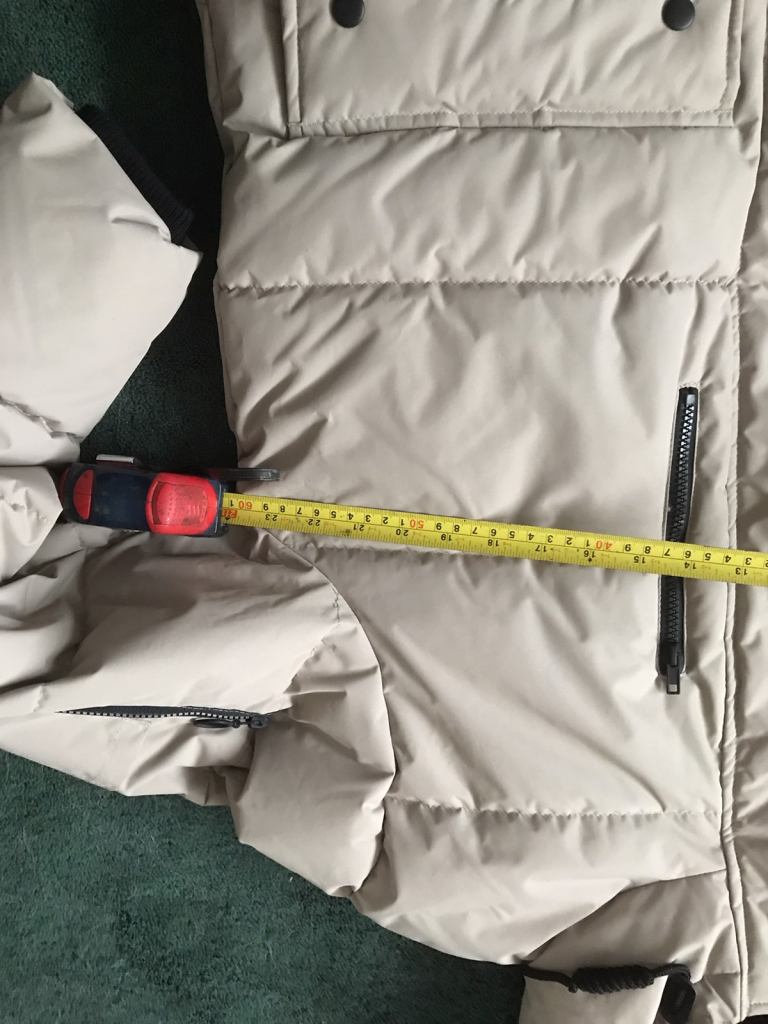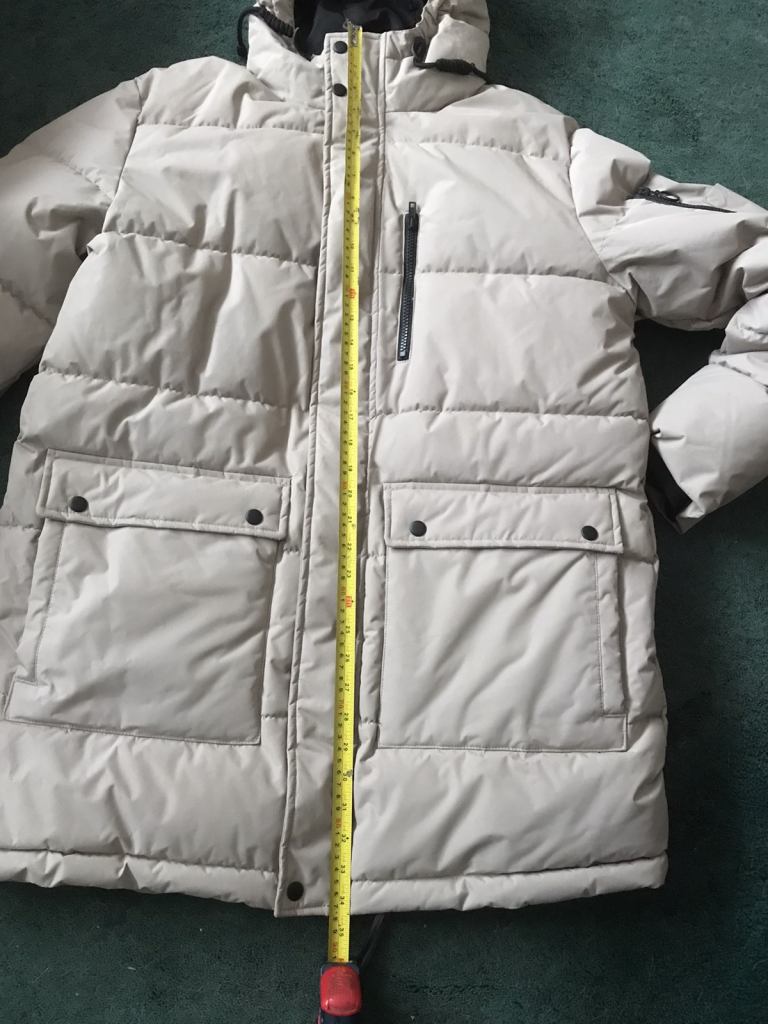 Winter coat man or a woman’s beige colour. Length 88cm from neck to bottom of coat width 60cm size large. Brand new never worn.
