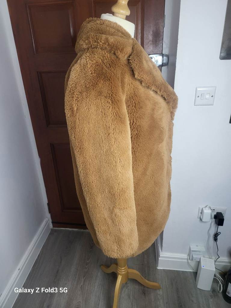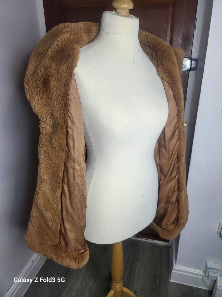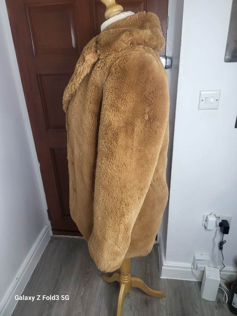 This Zara brown faux fur coat in size medium is a stylish and trendy addition to any woman's wardrobe. The overcoat design adds a touch of sophistication, while the faux fur material gives it a high-end look. The rich brown colour makes it versatile for both casual and formal occasions, making it a must-have piece for the wardrobe of any fashionable woman.