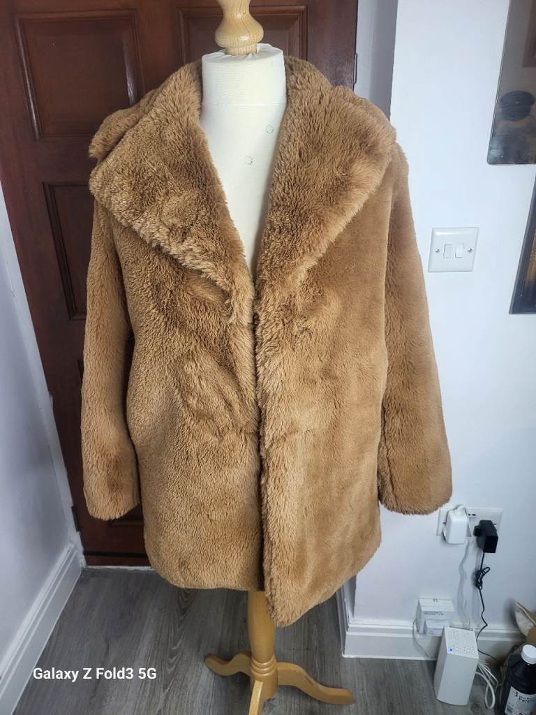 zara brown faux fur coat