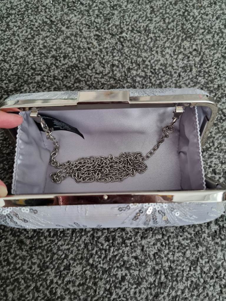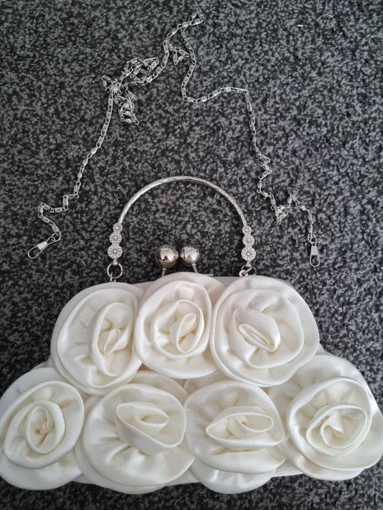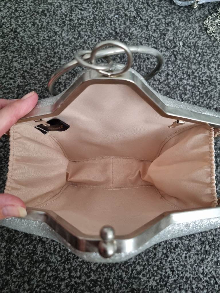 2 silver bags are hard case and shiny, one is star shape, very unusual design, the othe a smal clutch the cream bag is soft fabric with lovely roses designed.. £10 for all 3 bags. collection coventry. I'm selling other bags if your interested.