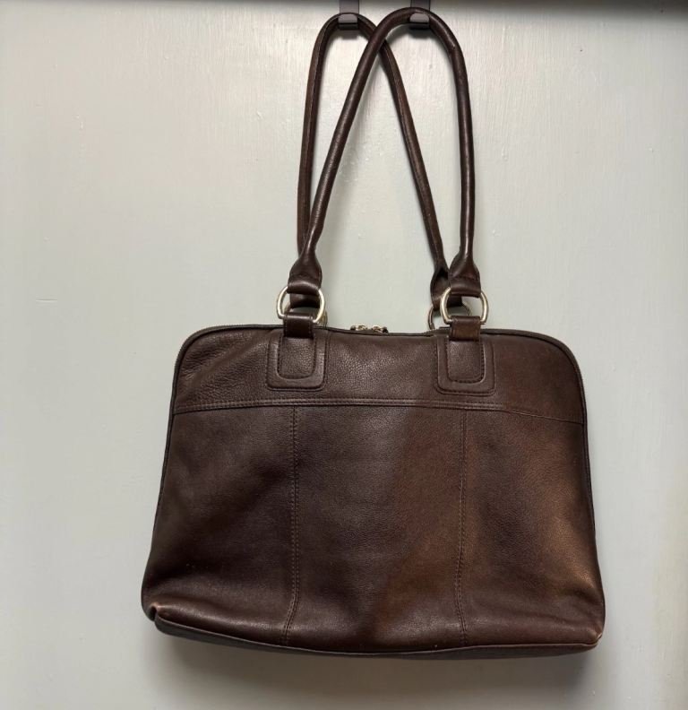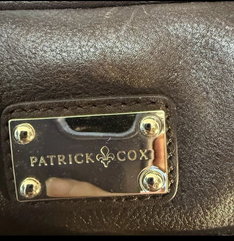 Patrick Cox laptop shoulder bag in brown leather.