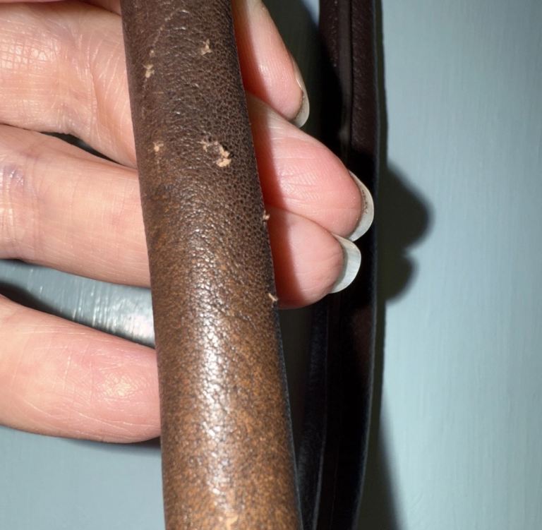 The front of this pocket has a Fleur de Lys pattern.
