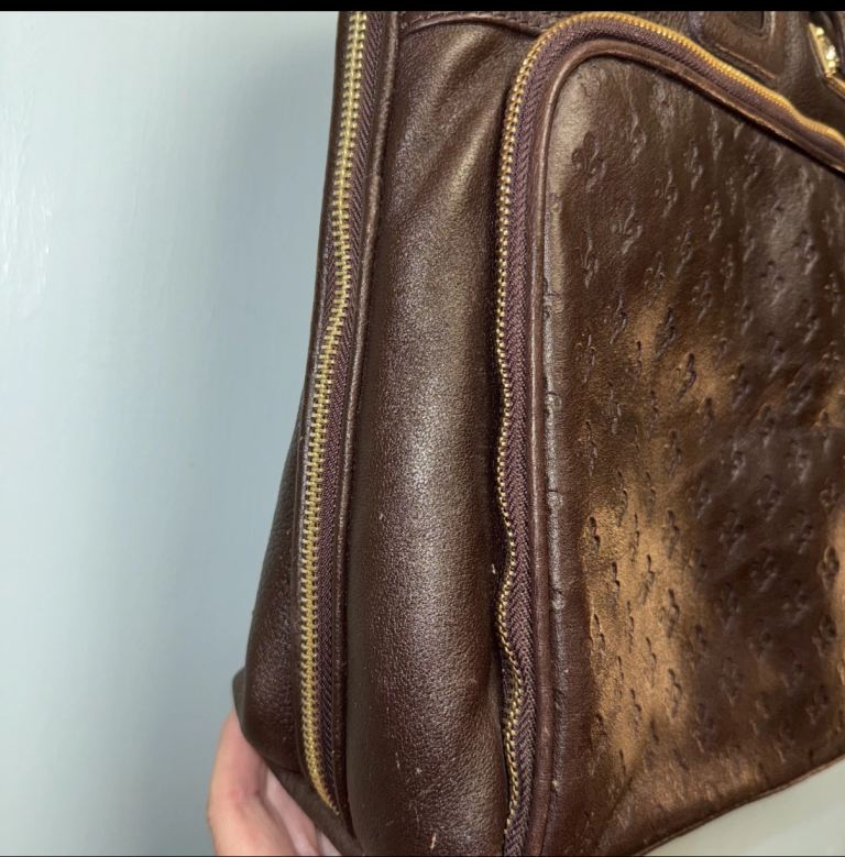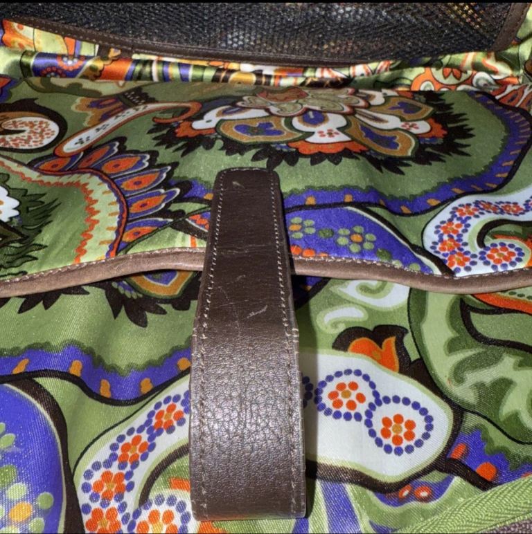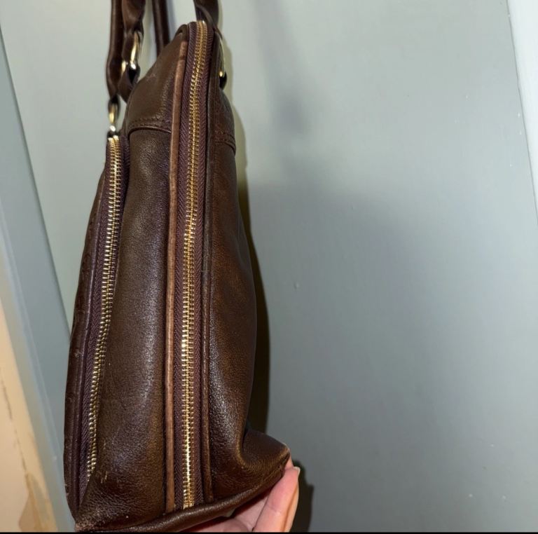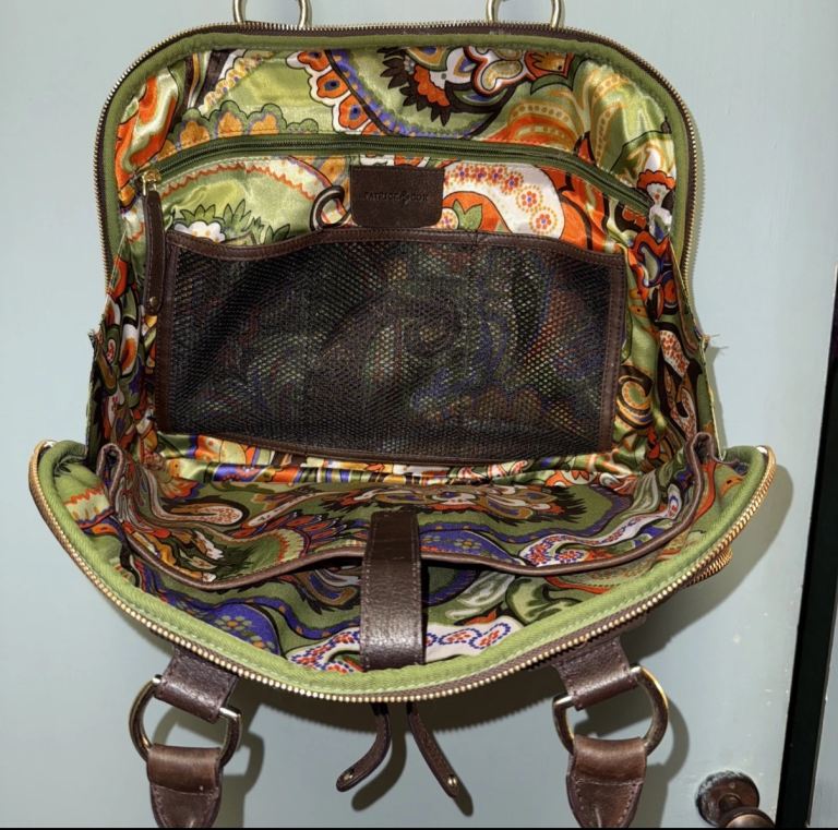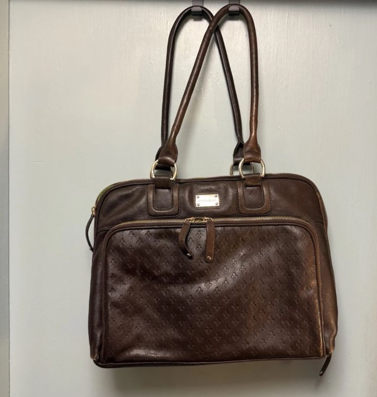 Big Brown Leather Laptop/ Work Bag by Patrick Cox. Jazzy lining, Many Pockets.