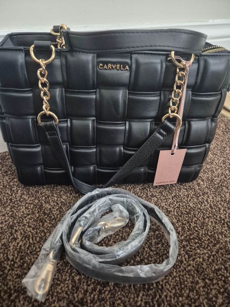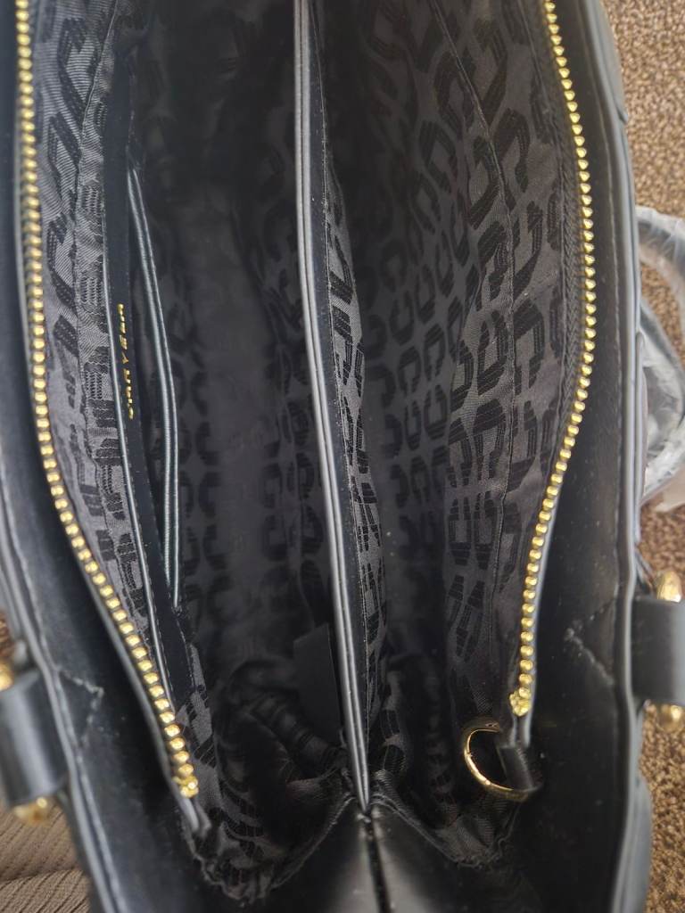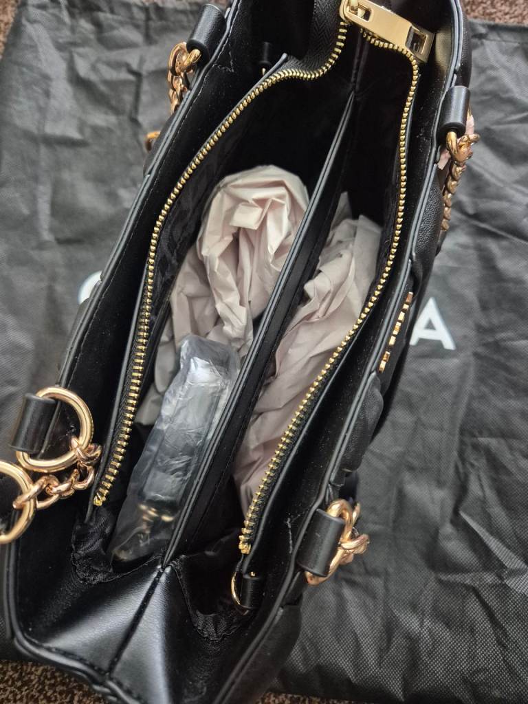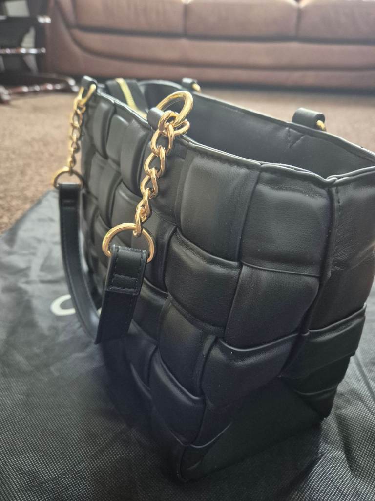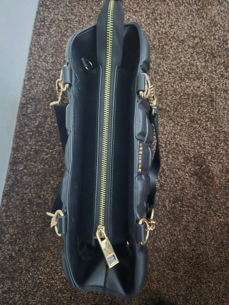For sale is a brand new Carvela bag with tags and dustbag. It is very spacious with 2 comparments and a small inside pocket on one side. Gorgeous detail, with gold chain on handles, studs and zip. Also comes with a shoulder strap. Cost price was £109. Selling for £45. Would make a great present. Buyer to collect or can post, buyer to pay postage.