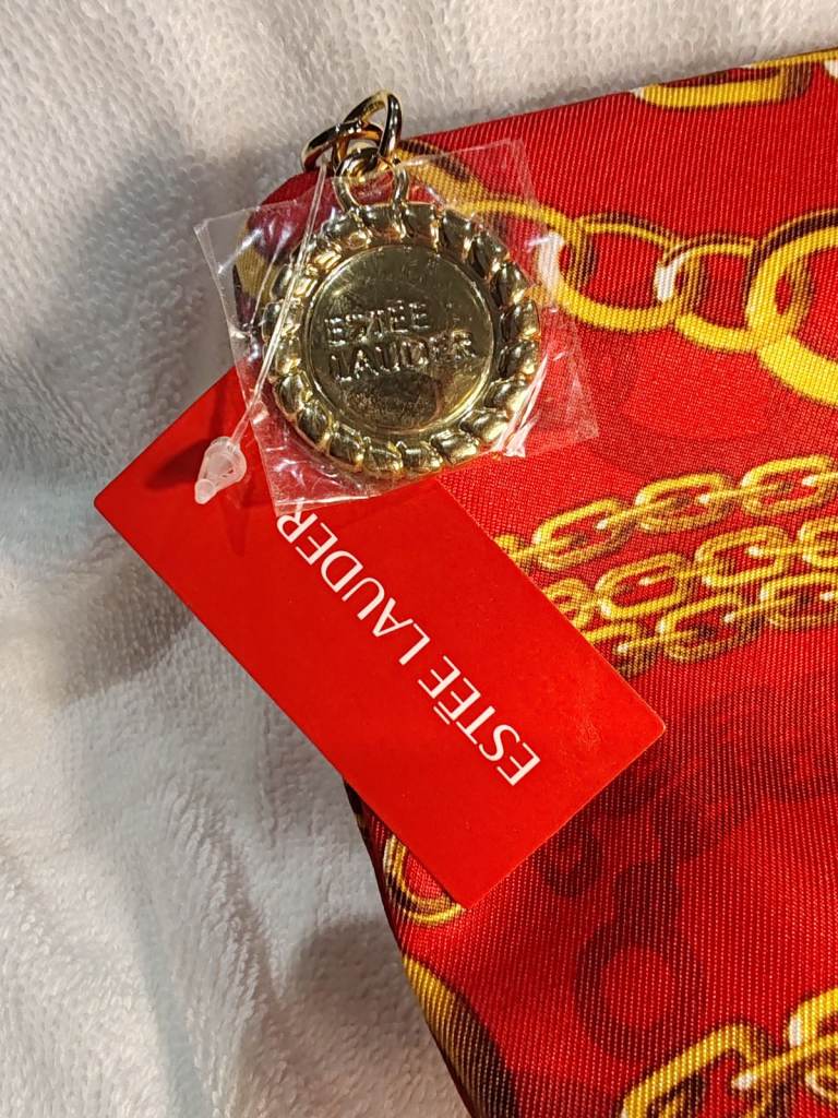 Estée Lauder Make Up Bag/Pouch Gold & Red Brand New With Tags Golden Chains.