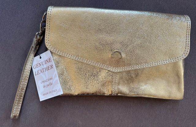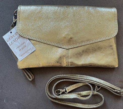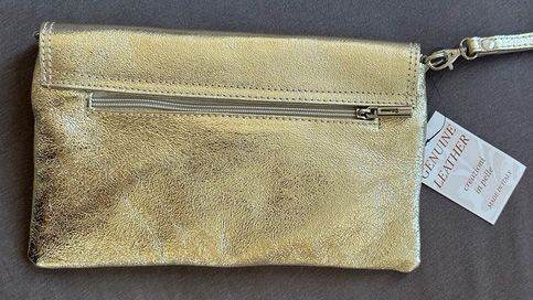 Gold Leather Clutch/Crossbody Bag – NEW – Italian Leather