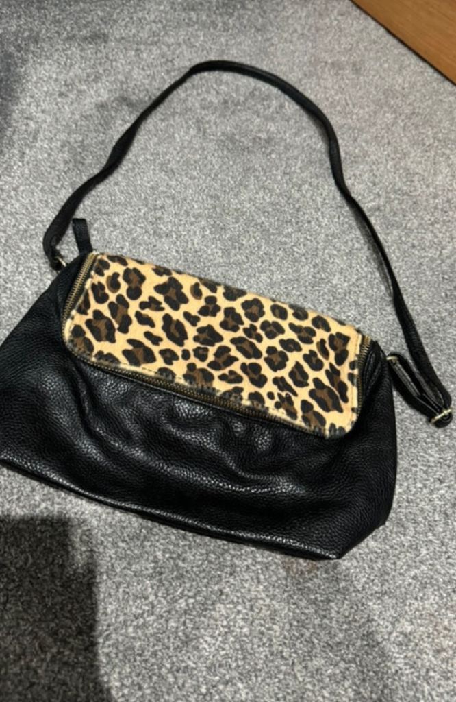 H&M Black and Leopard Print Pony Hair Shoulder Bag