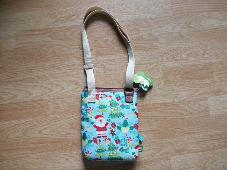 Brand new Lily bloom Christmas themed crossbody bag, it has 2 zip pockets on the front with 1 large compartment as shown in photos, the bag measures 10 inch by 8 inch and has an adjustable strap. Pick up only please.