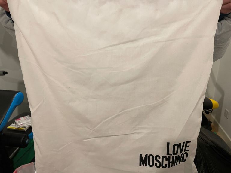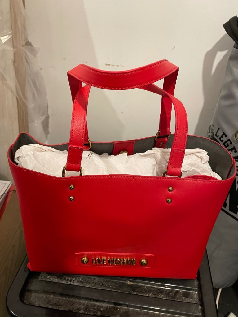 Love moschino tote bag read. Brand new never used. Collection castlemilk or local delivery for fuel fee.