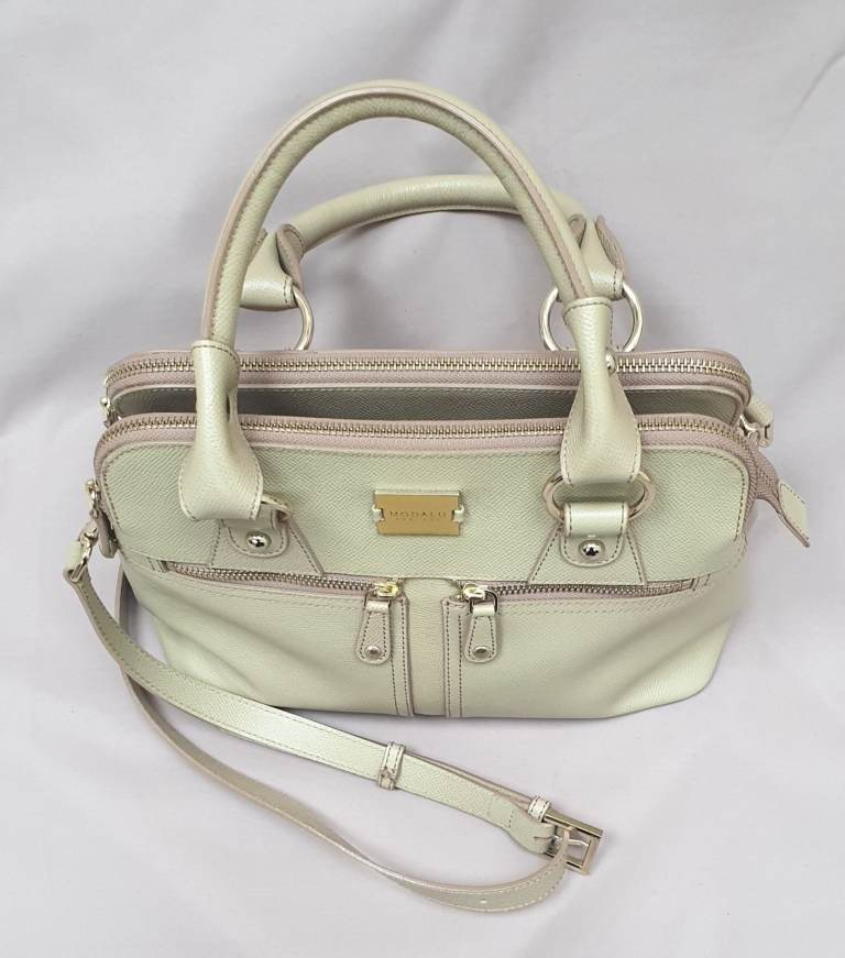 Modalu England Leather Grab Bag/Shoulder Bag In Beige