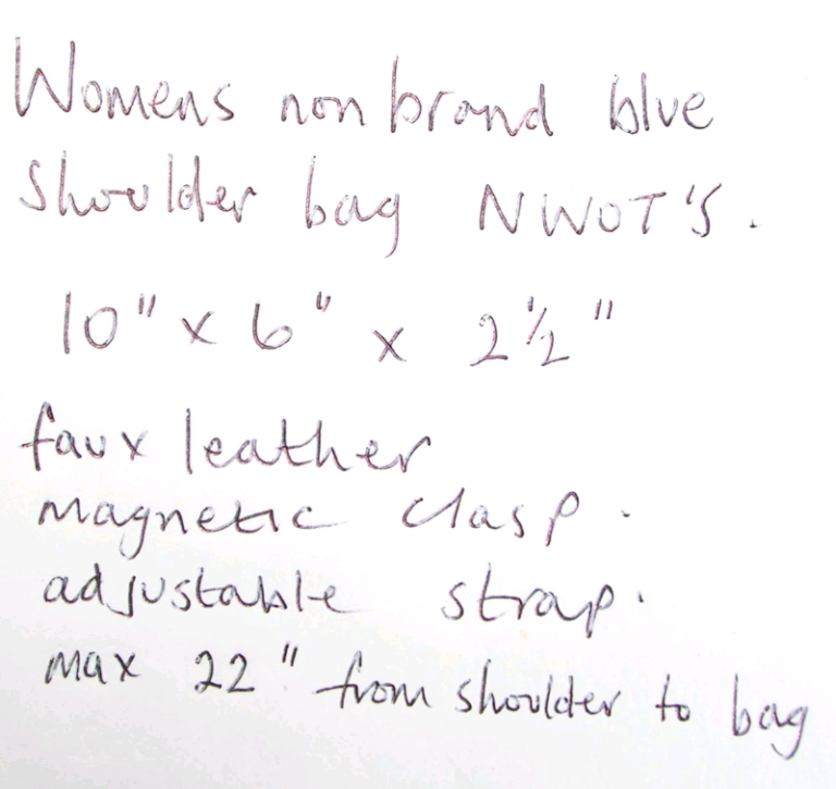 See photos showing colour, style and sizing details, blue faux leather shoulder bag 22 inch max length, adjustable