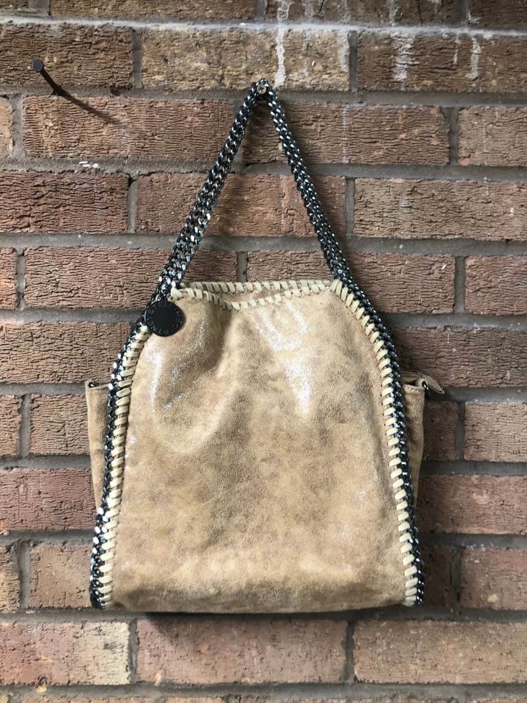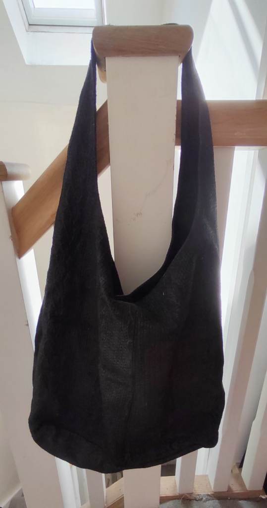 Approximate size: Height with bag laid flat from curve to top 9” (23cm) or height with bag sat up is 7 1/2” (19cm) x Width at widest part 11 1/2” (29cm) x Depth at widest part when bag is standing up 4 3/4” (12cm)