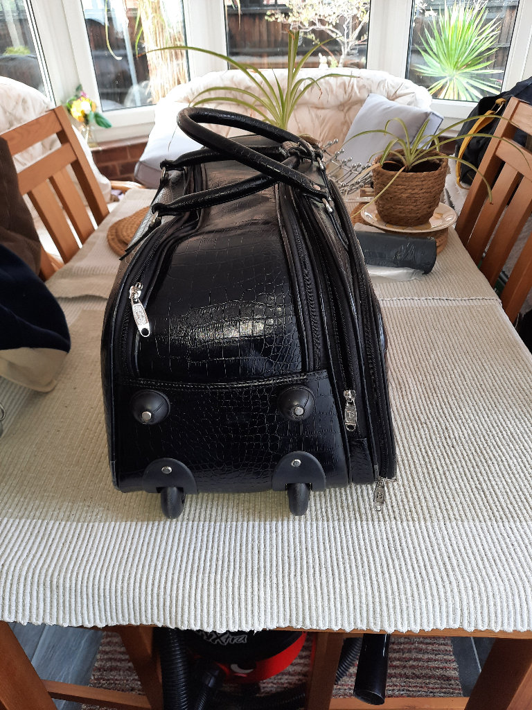 Travel bag with wheels. Faux crocodile skin. Immaculate condition. Bought in NZ.