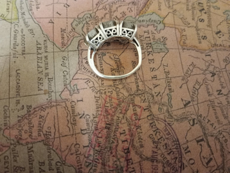 Make me an offer. Vintage Sterling Silver Muonionalasta Meteorite 3 Stone Encased Ring with hand carved details along both sides and bottom. A lot of time and care went into crafting this Out of This World, 1 of a kind statement Ring. Has clear stamp. Needs a reshape and a Polish and it's back to its original state like the day it was first made. Collection Only. Payment on Collection. Thanks 24 HOUR SALE ONLY