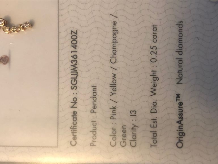 Pendant Diamond Bubble Champagne Green yellow Pink SGL CERTIFIED