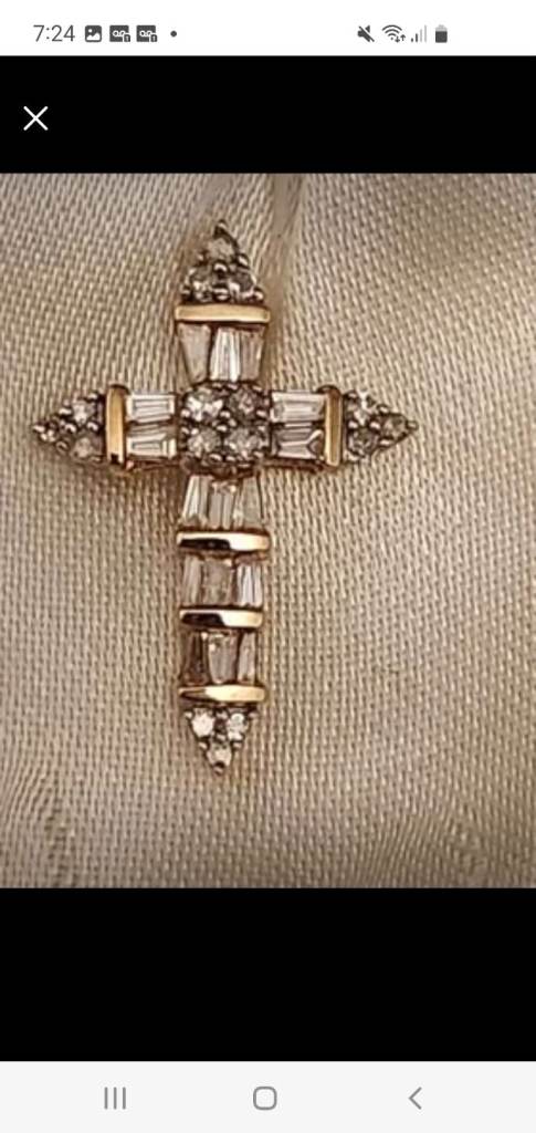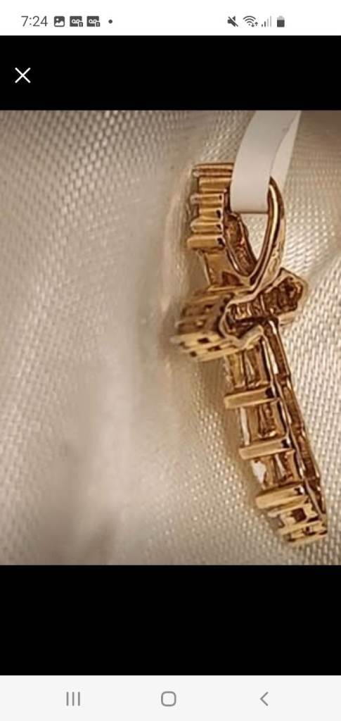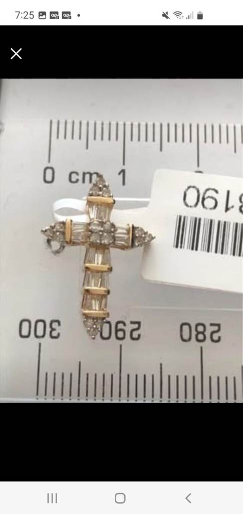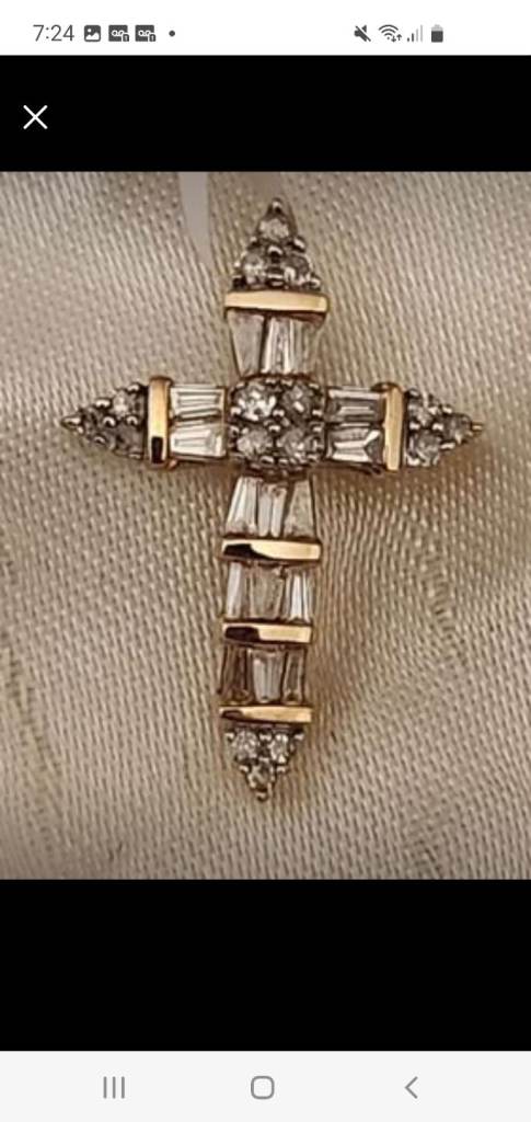 14ct Gold 0.50Ct Taper Baguette And Round 33 Diamond Cross Pendant brand new with tags