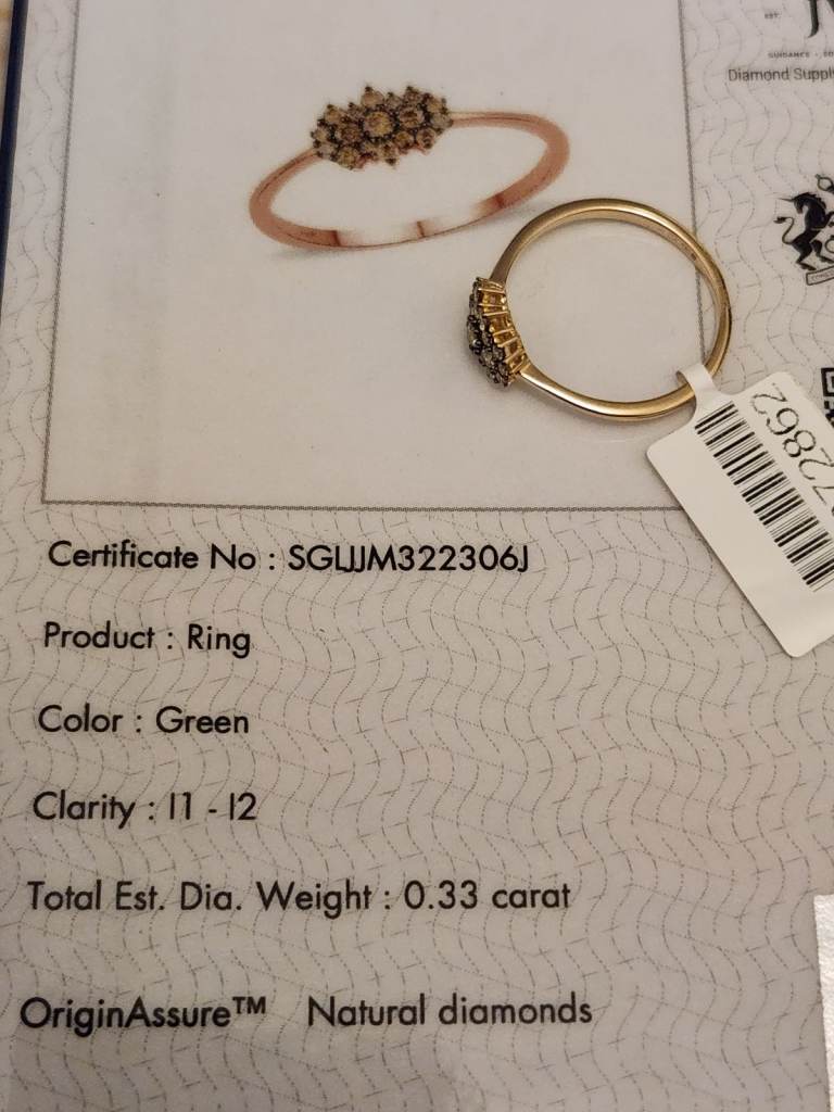 SIZE R DIAMONDS 14ct Gold Ring Size R SGL CERTIFIED Natural Green Diamonds BOAT RING 0.33ct Brand new
