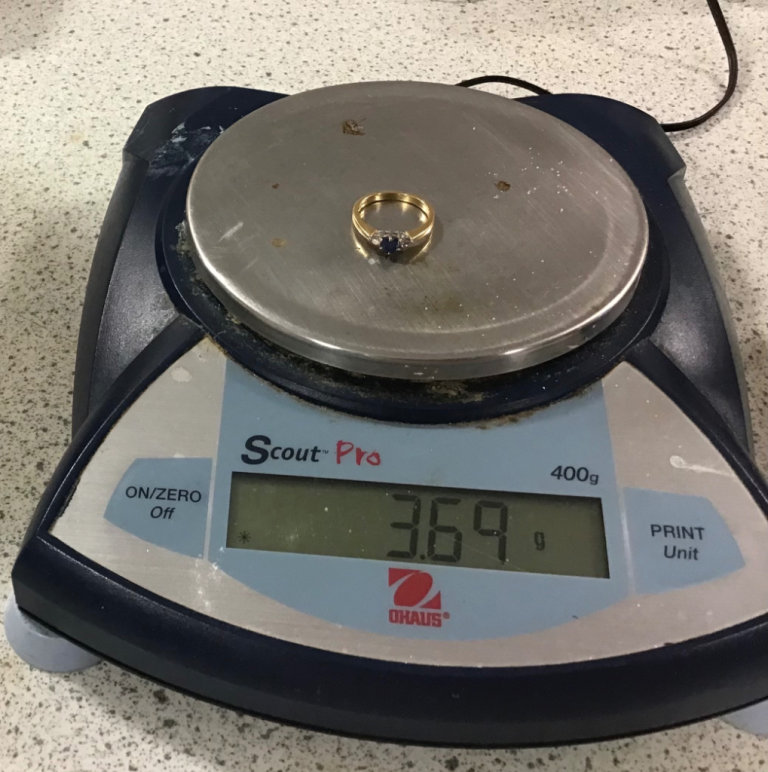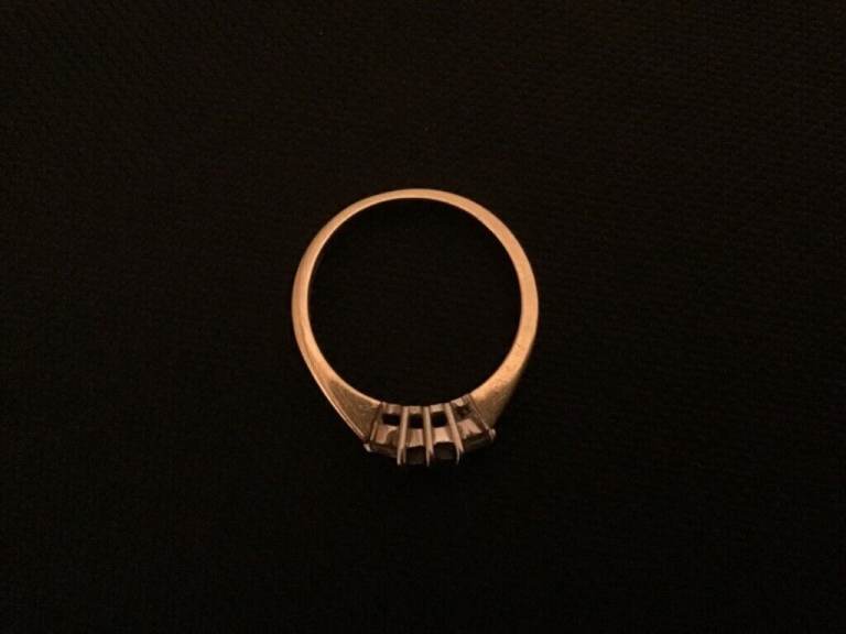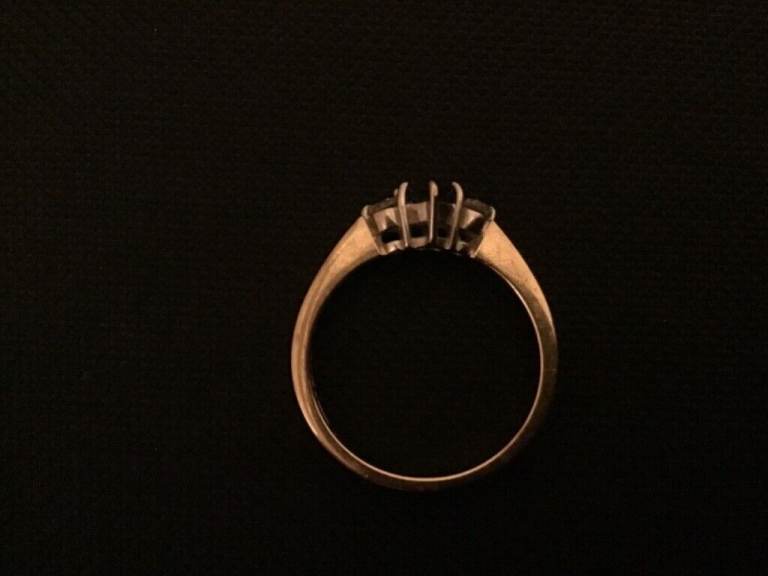 18ct gold ring with heart cut blue sapphire and two brilliant cut diamonds. Size N. The hallmark is very difficult to photograph and needs to be viewed with a jeweller’s loop.