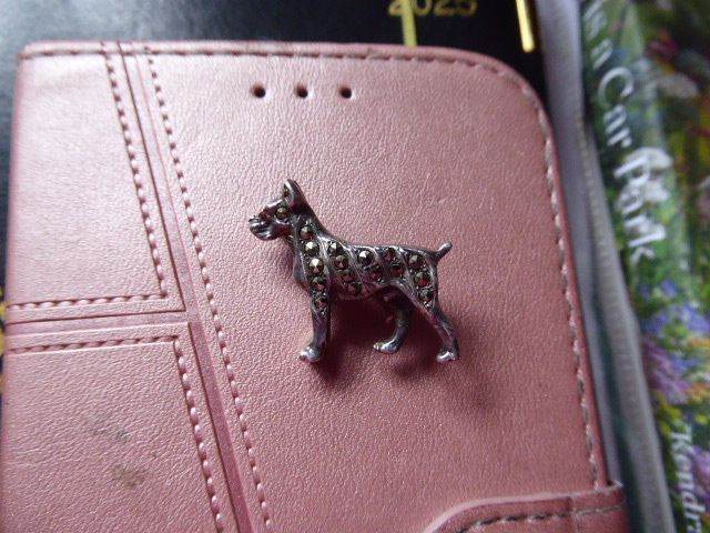 1 x Dog brooch in silver with jewels and 1 x Dog brooch (scotty dog) in plain silver - lovely pieces - viewing welcome - £10 each brooch - each measures approx 1 inch