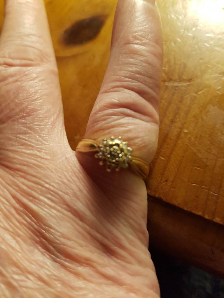 9ct Gold Diamond Cluster Ring size m1/2 hallmarked Good Condition