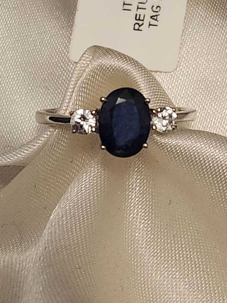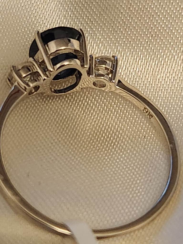 9CT White Gold Size O Kanchanaburi Blue Sapphire Ring Natural Cambodian Zircon Ring WHITE GOLD 9CT
