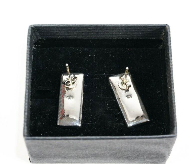 These lovely ear-studs crafted from Sterling Silver & chic grey Abalone shell are shown here in their presentation box.